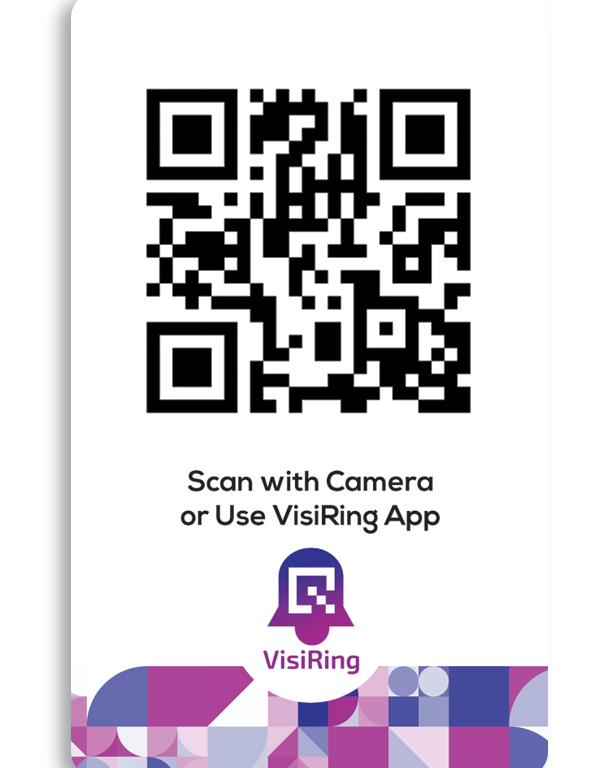 VisiRing tags come with pre-printed QR codes on durable, weatherproof stickers, keyrings, and cards, designed to integrate seamlessly with your existing VisiRing Alerts. Once linked, scanning a VisiRing tag's QR code instantly provides access to and displays your associated VisiRing alert details.